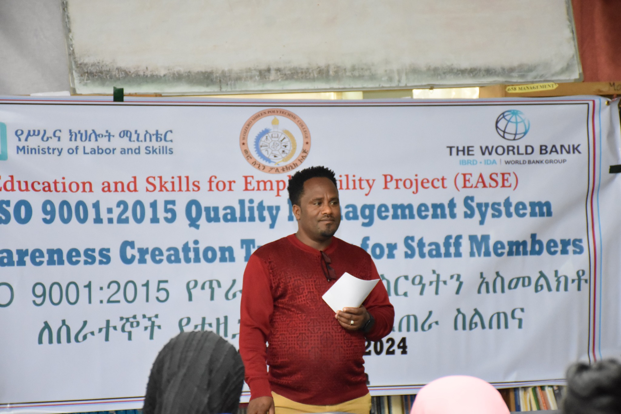 Back To Main PageየISO 9001:2015 የጥራት አመራር ስርዓትን አስመልክቶ ስልጠና እየተሰጠ ነው፡፡ ደሴ፡-ህዳር 26/2017ዓ.ም ወ/ሮ ስኂን ፖሊቴክኒክ ኮሌጅ የወይዘሮ ስኂን ፖቴክኒክ ኮሌጅ የISO 9001:2015 የጥራት አመራር ስርዓትንና ካይዘንን አስመልክቶ ለሰራተኞች የተዘጋጀ የግንዛቤ ፈጠራ ስልጠና በኮምቦልቻ ከተማ እየተሰጠ ነው፡፡ ስልጠናው Education and Skill for Employment Project (EASE) ባደረገው የገንዘብ ድጋፍ አማካኝነት የሚሰጥ ሲሆን ከእሁድ ጀምሮ በመሰጠት ላይ ነው፡፡ ሰልጣኞች ከስልጠናው በኃላ ከዚህ ቀደሙ በተሻለ ስለካይዘንና ISO 9001:2015 የጥራት አመራር ስርዓትን በተመለከተ በቂ እውቀት ይይዛሉ ተብሎም ይጠበቃል፡፡